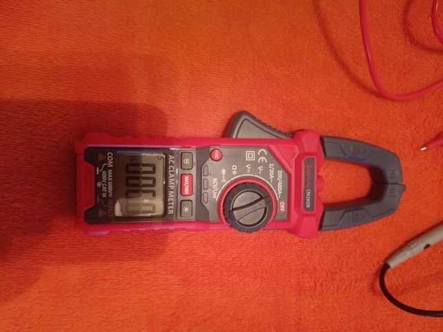 Pinza amperimétrica AstroAl CM2KOR. - Medición de AC Clamp Meter. - Rangos de 2/20A~ y 200/400A~. - Funciones: FUNC, NCV/Live, MAX/MIN. - Pantalla digital.