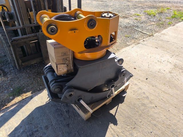 Pinza forestal para retroexcavadora de 5 a 8 toneladas. - Diseñada para trabajos de maderera. - Color amarillo y gris.
