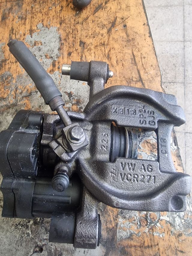 Pinza de freno trasera derecha para Seat León del año 2021. Eléctrico - Fabricada en hierro fundido. - Incluye soporte y tornillería.