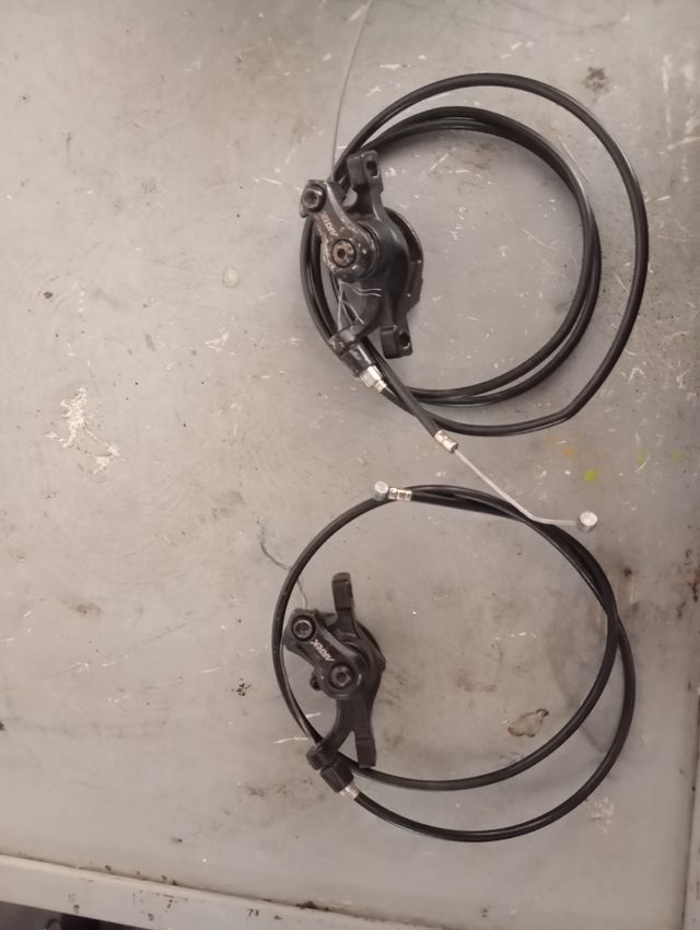 Pinzas delantera y trasera de de bici están en perfecto estado y con pastillas de freno incluida