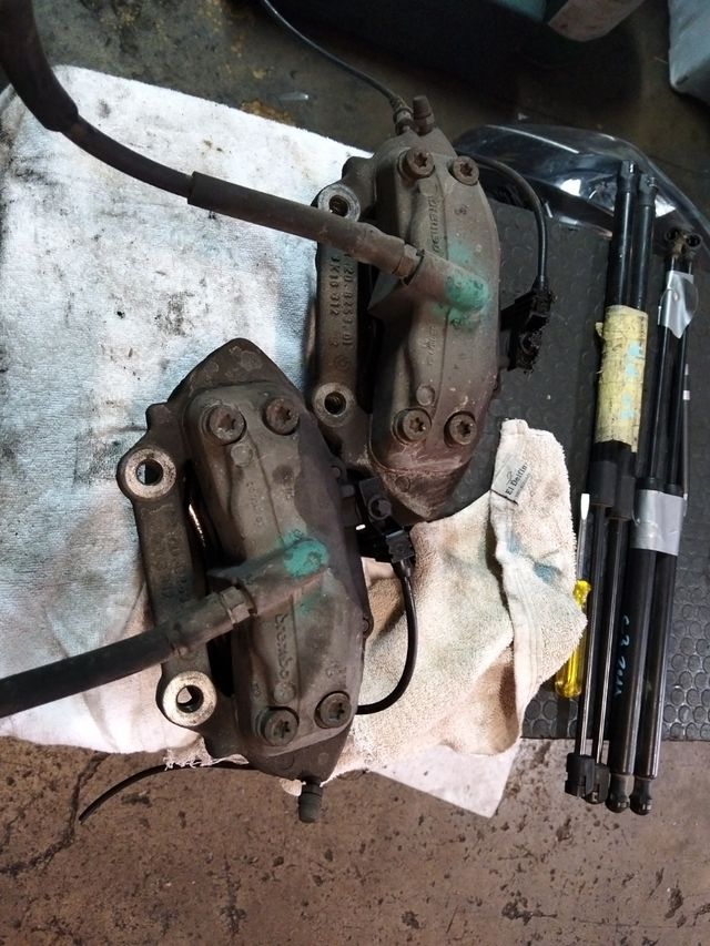 Se venden dos pinzas de freno Brembo de 4 pistones. Son piezas de recambio para vehículos. - Marca: Brembo - Número de pistones: 4