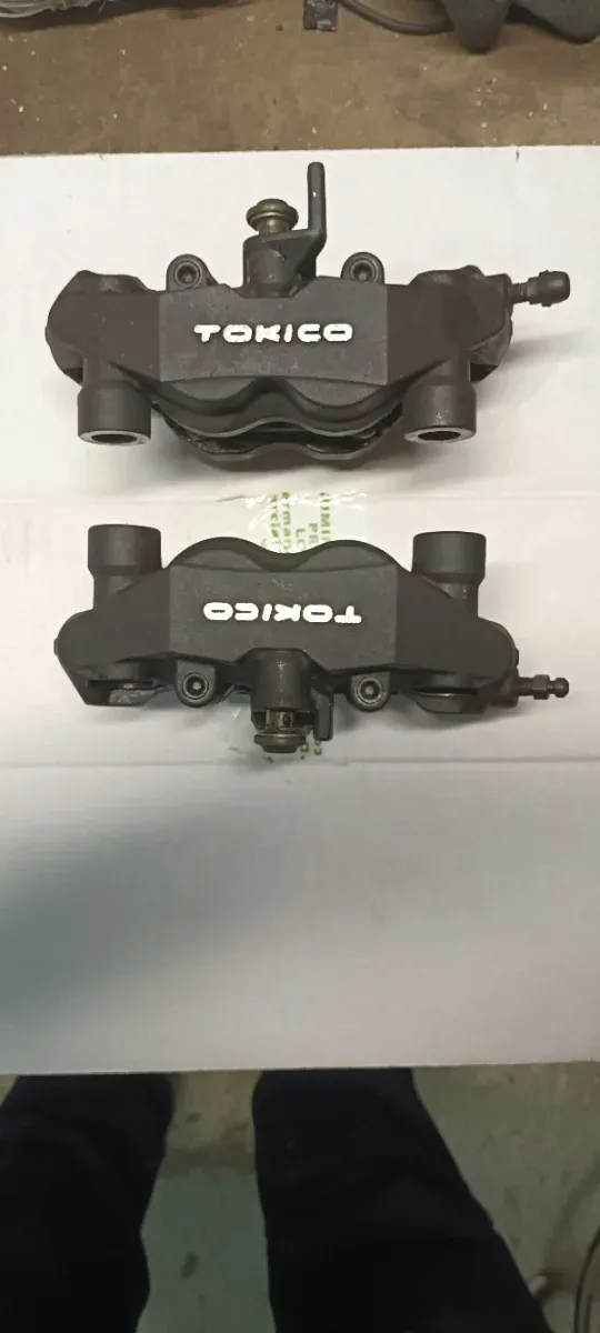 Juego de pinzas de freno delanteras de la marca Tokico, procedentes de una Suzuki GSXR 1000. - Compatibles con modelos K7 y K8.