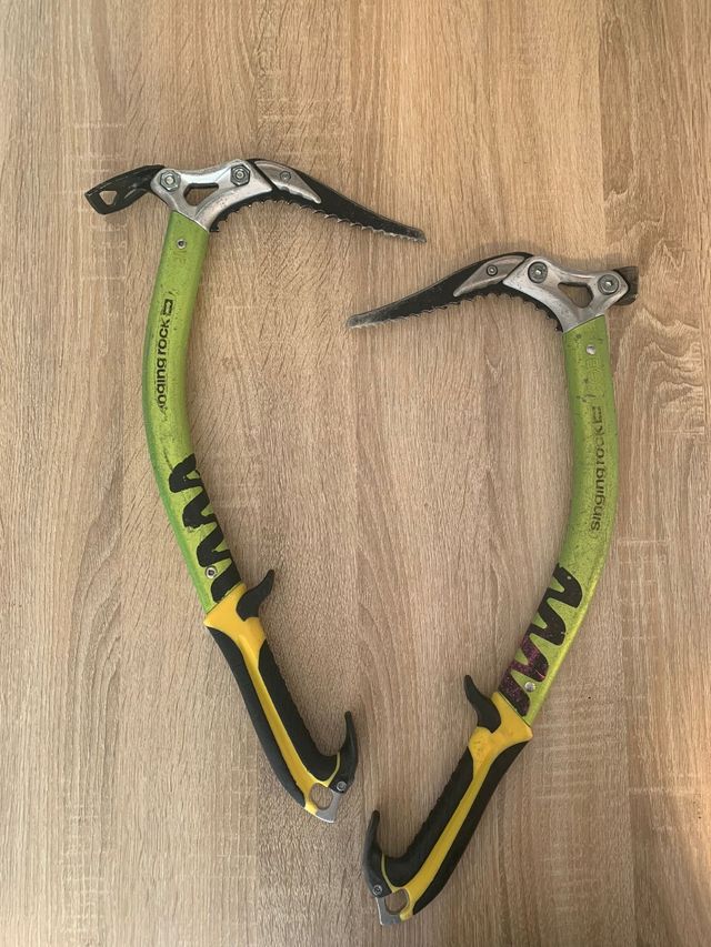 Piolets de la marca Singingrock modelo Bandit. Muy polivalentes perfectos para corredores y hielo. Tienen marcas de usarlos, siempre muy bien cuidados y van perfectos.