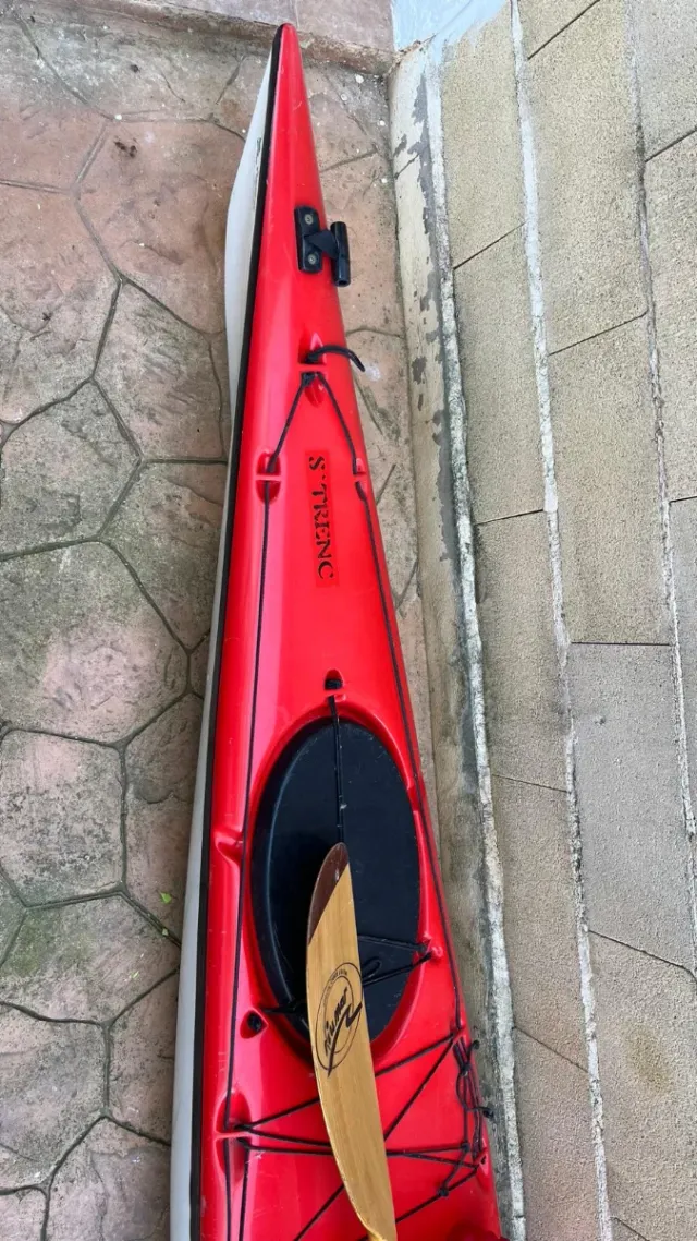 Piragua de recreo en color rojo y blanco. Ideal para disfrutar del agua. - Diseño aerodinámico. - Pala de madera incluida. -Chaleco incluido.