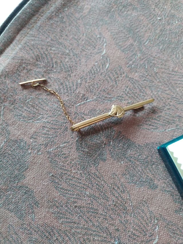Pisacorbatas de plata bañado en oro con marcaje con caja nuevo muy bonito y antiguo