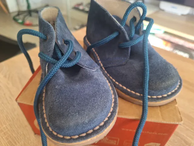 Botas de ante para en color azul. Talla 23 - Cierre con cordones. - Suela de goma.