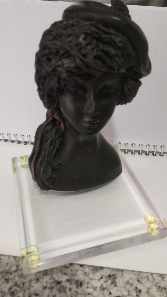 Elegante pisapapeles de busto de mujer. Peana de metacrilato.