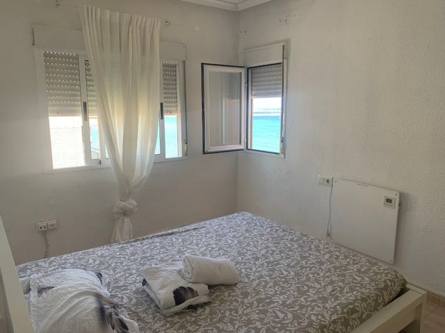 Apartment for rent in Torrevieja first line with stunning sea views, has 2 bedrooms, living room with sofa bed and television, terrace, 1 bathroom with shower, independent kitchen with oven, WIFI THROUGHOUT THE HOUSE