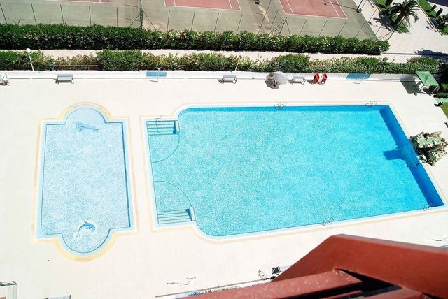 Se trata de un inmueble con orientación sur. Tiene vistas al mar, ascensor, cocina equipada y aire acondicionado y tiene pintura lisa, zona infantil, zona verde, videoportero, jardín comunitario, buen estado, vigilancia 24h, ventanas climalit, suelo tarima, extractor de humos, piscina comunitaria, puerta de seguridad y armarios empotrados.