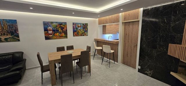 Al entrar accedemos a un precioso piso por la zona de comedor-cocina y sala de estar, se trata de un espacio amplio y muy luminoso, con una cocina independiente, una mesa en la zona de comedor para 6 personas y un amplio sofá en la zona de televisión, es un espacio con mucha luz natural y muy funcional.