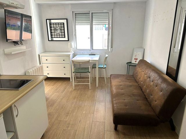 Dispone de sala de estar con cocina integrada, sofá, mesa con sillas, televisión y radiador eléctrico. Esta estancia está separada de la habitación por un armario empotrado. El dormitorio tiene cama individual con canapé y ventilador de techo. El baño está equipado con ducha con mampara y cuenta con espacio para la lavadora. Tiene balcón con espacio para mesa y 2 sillas. Situado cerca de las universidades y del hospital Clínico. Zona dotada de todos los servicios.