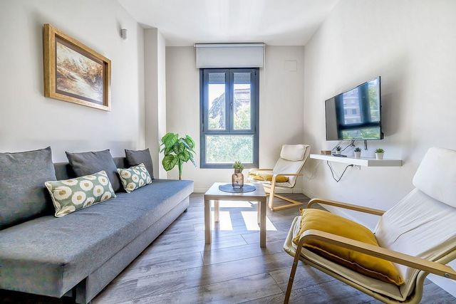 Salón amplio y luminoso con sofá cama y Smart TV.