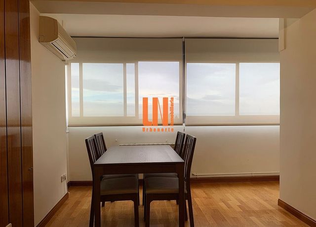 La vivienda se distribuye en una entrada con zona de cocina equipada con electrodomésticos, que da paso a un espacio abierto donde se distinguen claramente la zona de estar y el comedor. Gracias a la altura del piso y su excelente orientación, el apartamento disfruta de abundante luz natural durante todo el día, así como gracias a las grandes cristaleras que aportan aún más la luminosidad.