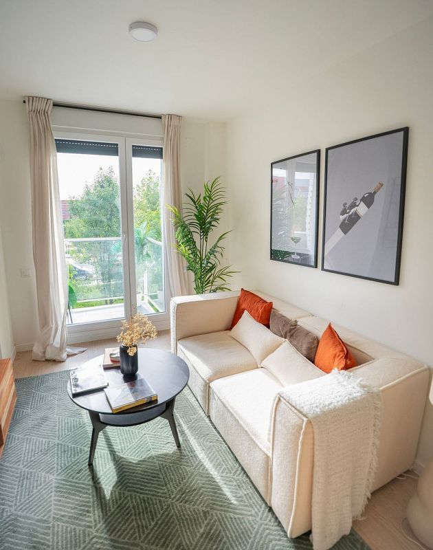 Se trata de viviendas modernas, espaciosas y muy luminosas, con acabados de alta gama que incluyen calefacción y aire acondicionado por suelo radiante y refrescante, iluminación LED de bajo consumo, persianas motorizadas y cocina completamente equipada con electrodomésticos. Algunas viviendas cuentan con jardín en planta baja o con grandes terrazas en los áticos, con vistas despejadas y muchísima luz natural gracias a los amplios ventanales.