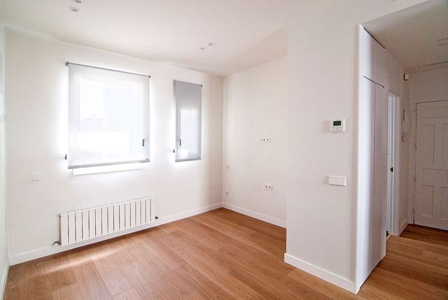 50 metros cuadrados, distribuidos en un espacio abierto que incluye salón-comedor, zona de trabajo, y cocina completa en isla; dormitorio con armario empotrado y cómoda; cuarto de baño con ducha termostática y distribuidor con ropero; ventanas de hoja única en todas las estancias. Interior a gran patio de manzana: luz todo el año y sin ruido de tráfico.