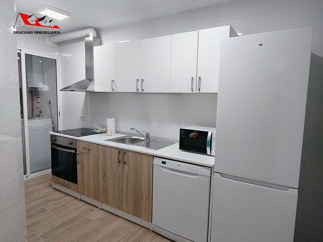 La vivienda se distribuye en 3 habitaciones amuebladas con cama, escritorio y armario. En el comedor nos encontramos con un sofá-cama, cocina amueblada y cuarto de baño completo con ducha.