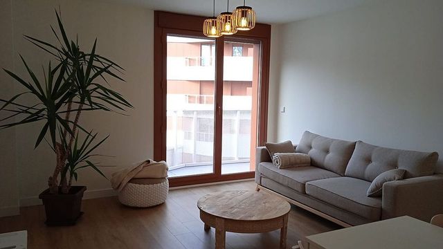 Detalles del productoVivienda nueva a estrenar situado en la isla de Zorrozaurre con amplia terraza. Dispone de un dormitorio con salida a la terraza, armario empotrado y cuarto de baño. La cocina es americana y está amueblada y equipada. Tiene un amplio salón con zona de comedor y sofá cama. Muy buena orientación y vistas despejadas. Suelo radiante. Plaza de garaje y trastero, incluidos en el precio. En el portal hay varios espacios para las bicicletas.