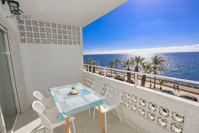 Este maravilloso apartamento en primera línea de playa te ofrece unas vistas inmejorables al mar mediterráneo, perfectas para disfrutar de amaneceres y atardeceres desde la comodidad de tu terraza. Ideal para una pareja, el piso cuenta con una acogedora habitación equipada con una cama de matrimonio y un sofá cama en el salón para recibir a tus invitados. El cuarto de baño ha sido recientemente reformado, asegurando un espacio moderno y funcional.