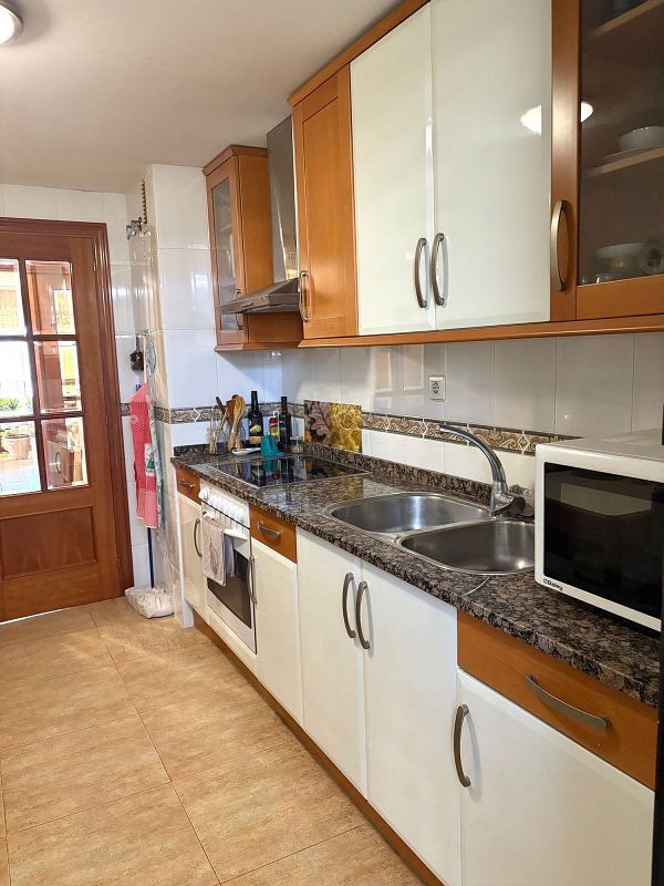 Dispone de dos dormitorios dobles, uno de ellos con armario empotrado, baño con ducha, cocina equipada con salida a una galería en donde se encuentra la caldera y salón con acceso a una terraza. Buena distribución, con muy poco pasillo, lo que hace que casi todos los metros de la vivienda estén aprovechados al máximo.