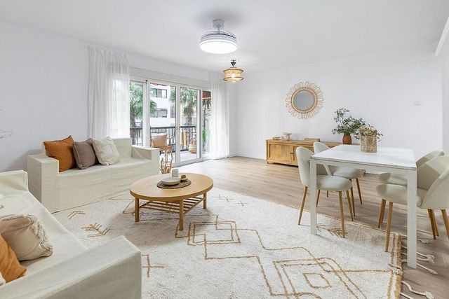 La distribución se compone de un espacioso salón-comedor con acceso a una amplia terraza, ideal para disfrutar y relajarte al aire libre, tres habitaciones (dos dobles y una sencilla) equipadas cada una de sus respectivos armarios empotrados y ventiladores de techo para aliviar las temperaturas en los meses de verano, dos baños completos, y una cocina independiente totalmente equipada.