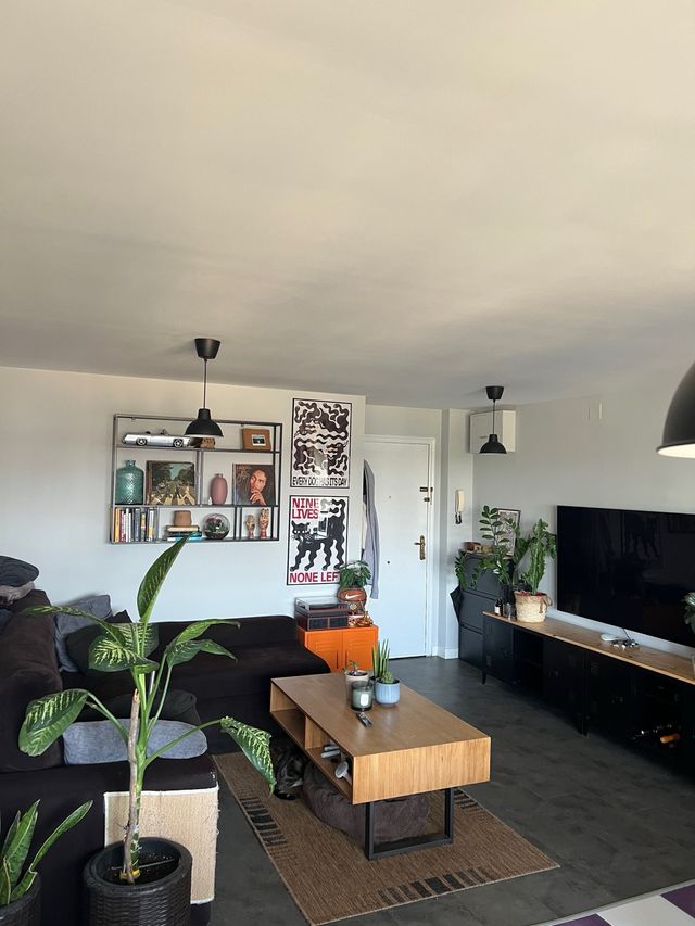 Es un apartamento con tres habitaciones, salon-cocina, baño y muy luminoso.