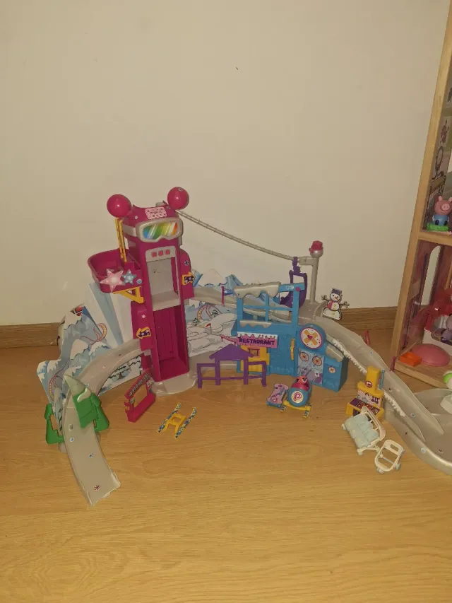 Divertida pista de esquí de juguete con accesorios. - Incluye varias figuras y vehículos. - Estructura de plástico resistente. - Diseño colorido y atractivo.