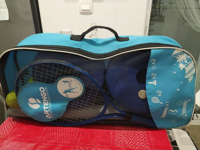 Detalles del productoPista de tenis. Los pilares miden 70 cm de alto. La red mide 2,80 x 43 cm, montada queda como una pista de 3 metros x 6 metros, ideal para practicar. La base donde se ponen los posters tienes la posibilidad de rellenarse con agua o arena para que pese y no se mueva. La red se monta rapidamente y se ajusta con cordones. Incluye 2 raquetas y originalmente llevaba 2 pelota, pero he añadido 4 pelotas más, total 6.Todo introducido en una practica bolsa con asa y apertura total. También están las instrucciones. Costo más del 60 €.