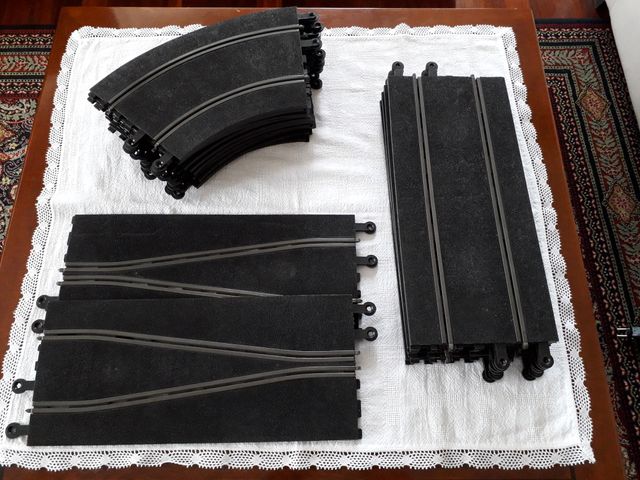 Pistas Scalextric clásico. 8 tramos rectos, incluyendo la chicane, y 10 tramos curvos.