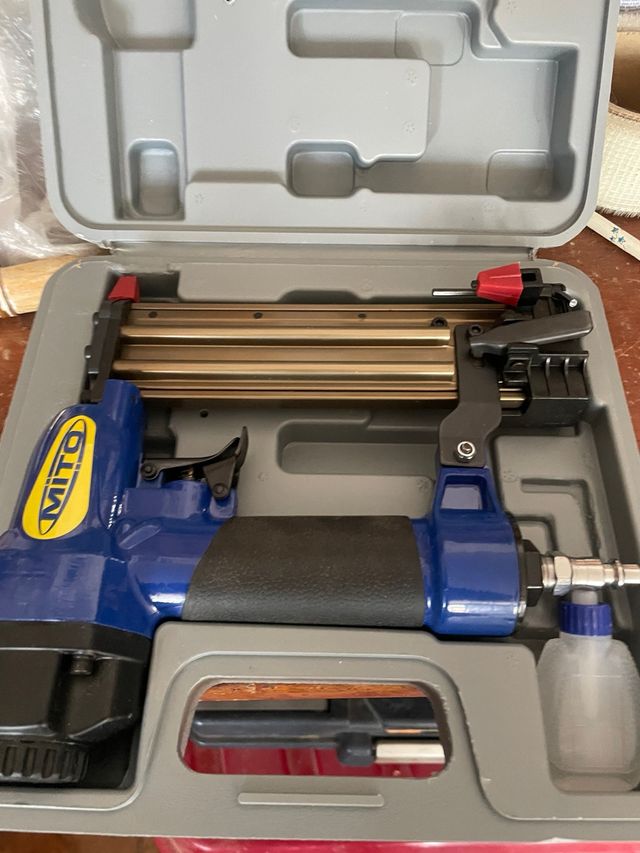 Clavadora neumática Mito en buen estado. Incluye estuche y bote de aceite. - Marca: Mito - Tipo: Neumática - Incluye estuche y aceite.