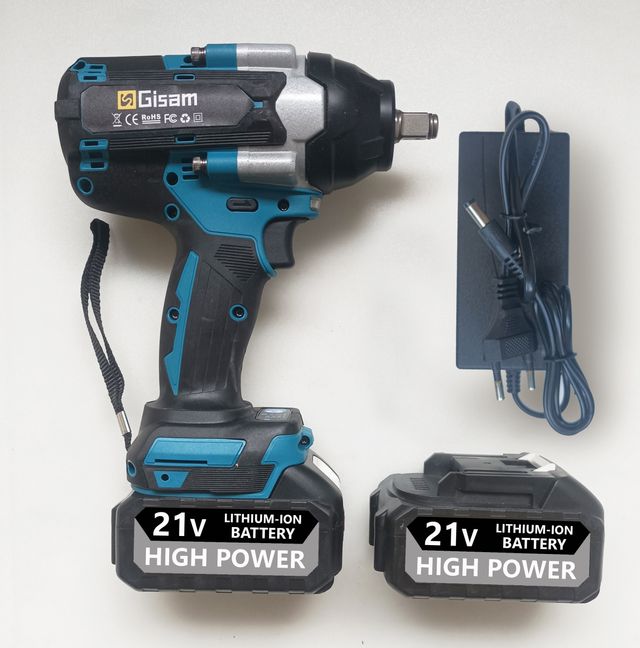 Pistola de impacto con dos baterías de litio de 21V y cargador. - Incluye dos baterías de litio de 21V. - Cargador de batería. - Potencia de 1000 Nm.