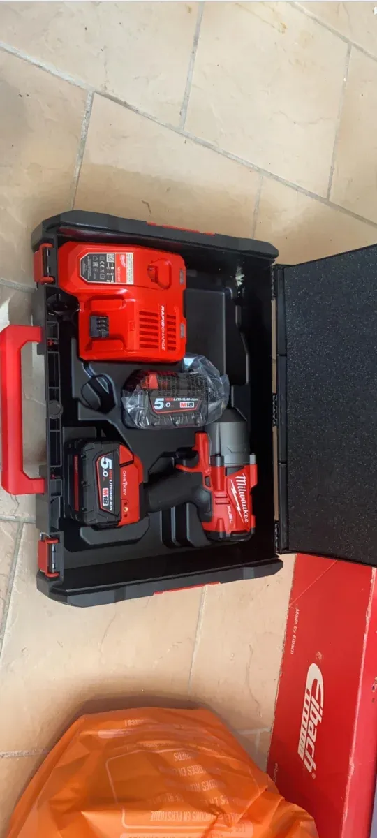 Se vende pistola de impacto Milwaukee M18 en su maletín. - Incluye dos baterías de 5.0 Ah. - Cargador rápido. - Maletín de transporte.