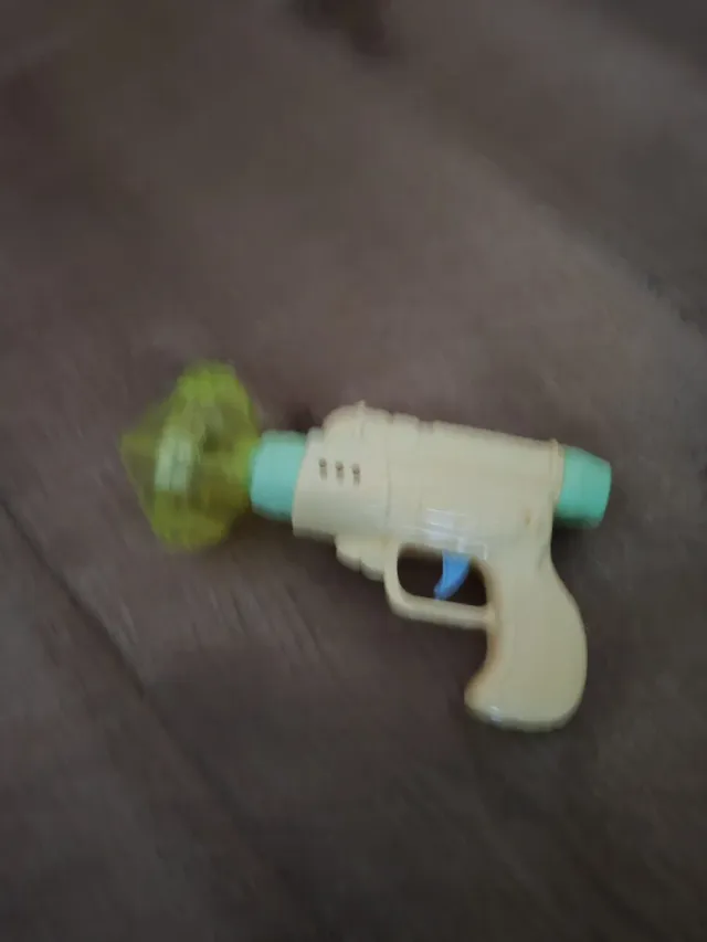 Detalles del productoPistola de juguete de color crema y detalles en verde menta. Ideal para juegos.
