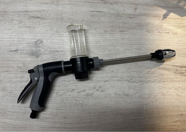 Detalles del productoPistola de lavado con un depósito acoplado para jabón o fertilizante.