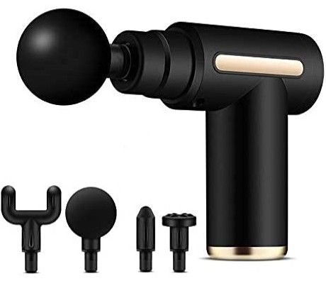 Pistola de masaje M-T1. Con 4 cabezales intercambiables. Recargable: cable Tipo C. Potencia: 30W. Capacidad de la batería: 1500 mAh. , Ref: 14101.