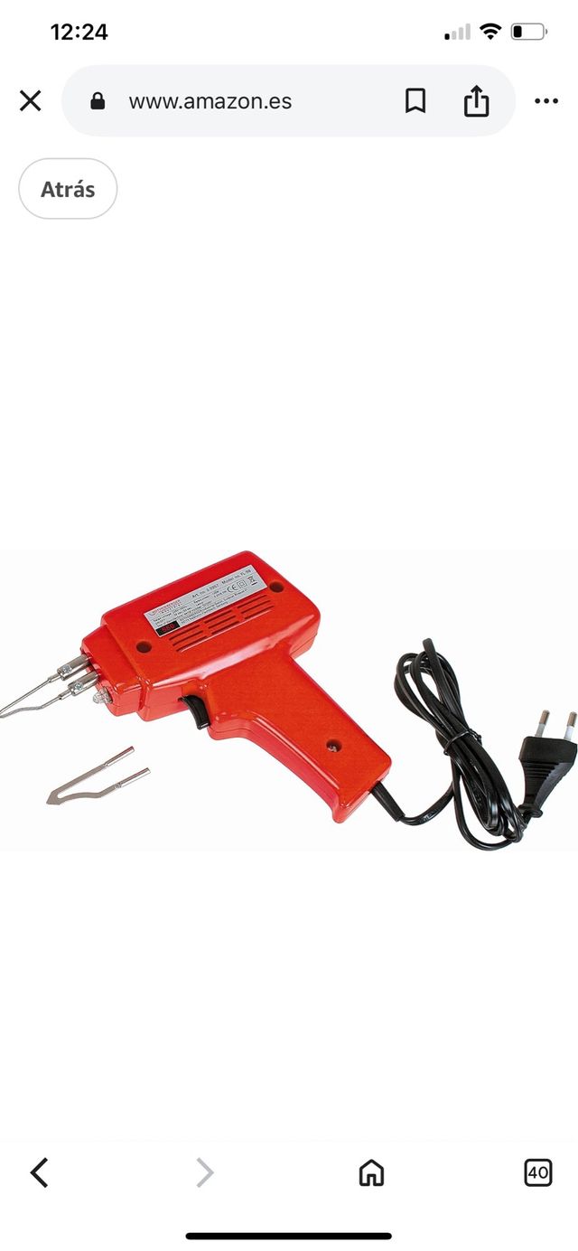 Detalles del productoPistola de soldar eléctrica de color rojo.