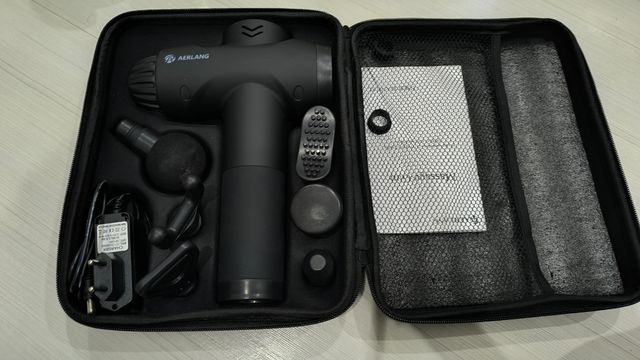 Detalles del productoPistola de Masaje Muscular, AERLANG Portátil Tejido Profundo, con 20 velocidades, 6 cabezales de masaje, silencioso con pantalla LCD para el alivio del dolor muscular