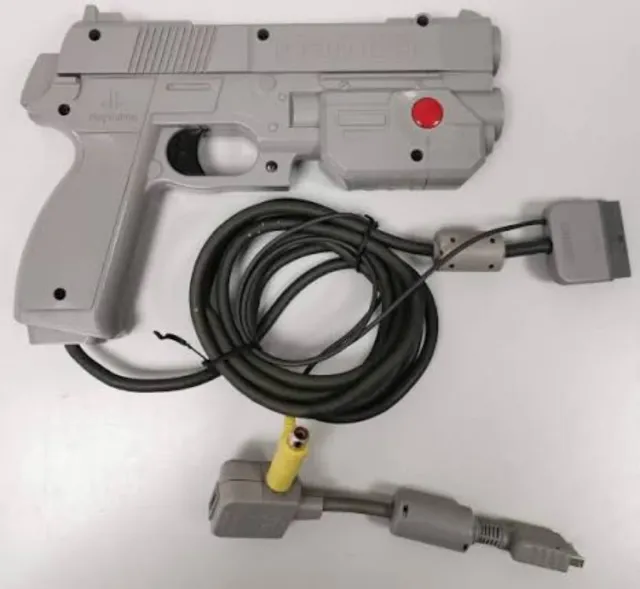 Pistola de luz Nanco para PlayStation 1. - Color gris. - Incluye cable de conexión.