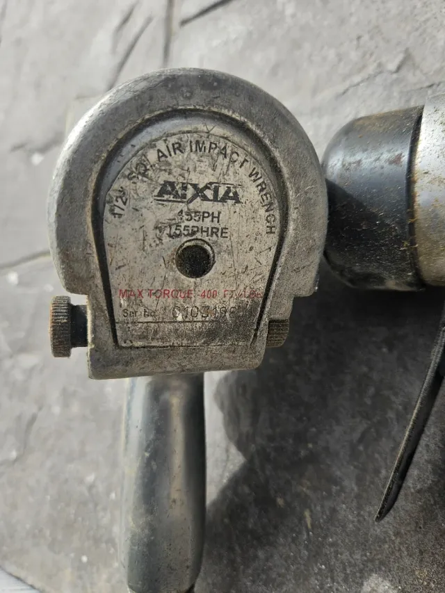 Pistola de impacto neumática de la marca Aixia. - Tamaño de entrada: 1/2 - Modelo: 455PH - Máximo torque: 400 ft-lbs - Número de serie: 0103496