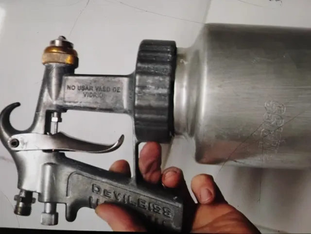 Pistola de pintar de la marca Devilbiss. - Cuerpo metálico. - Depósito de aluminio. - Advertencia: NO USAR VASO DE VIDRIO.