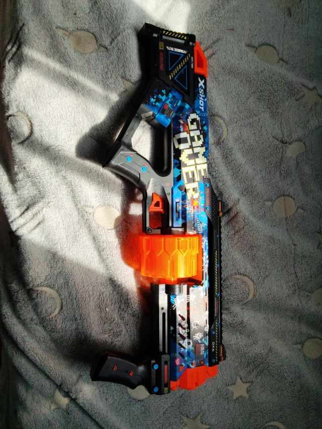Una pistola de juguete nueva sin balas Tiene un diseño de videojuegos y es ligera.