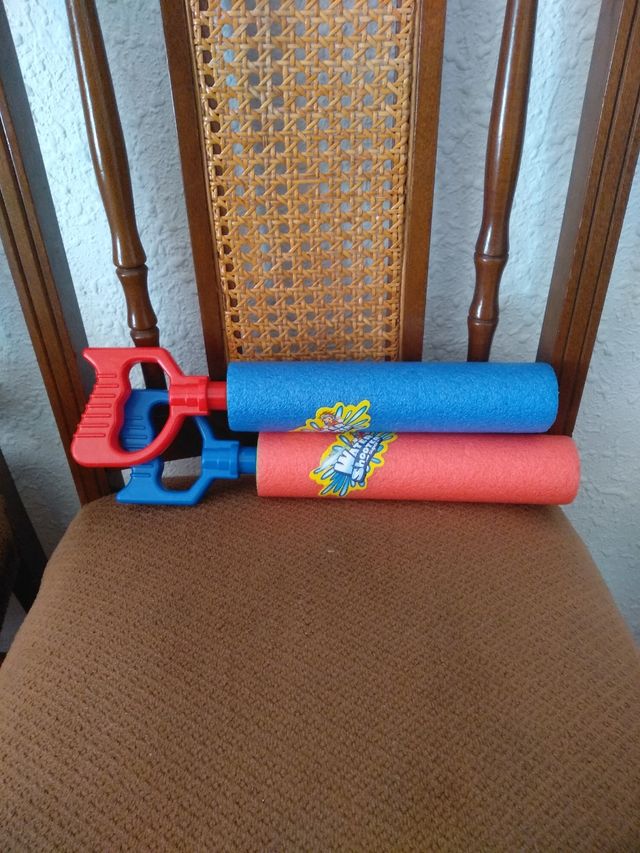 Set de dos pistolas de agua para divertirse. - Pistola de agua azul. - Pistola de agua naranja.