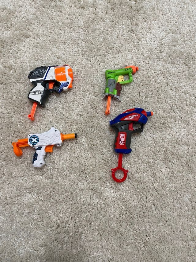 Pistola pequeñas con no mucha potencia perfecta para niños pequeños viene cada una con dos balas tambien se pueden comprar individualmente a 6€ cada una