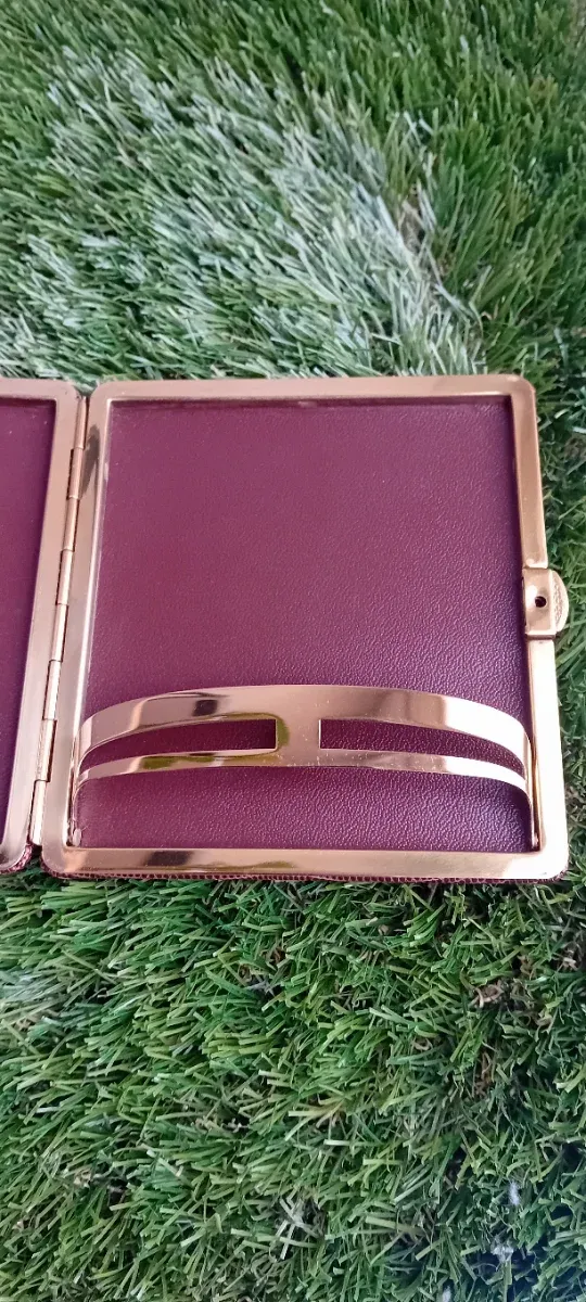 Elegante pitillera con diseño de Paris. - Color dorado. - Interior en tono burdeos. - Soporte interior para cigarrillos.
