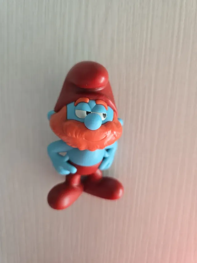 Figura promocional del Pitufo Ken de Burger King, de la película. - Color azul y rojo. - Detalle de barba naranja.