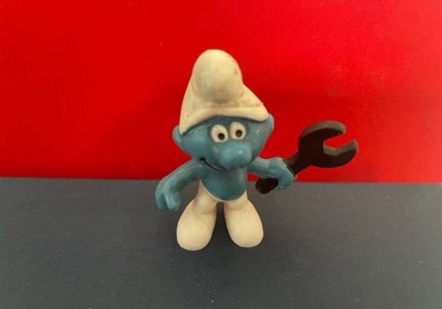 Detalles del productoFigura de colección de un Pitufo mecánico. Es una pieza pequeña y encantadora, ideal para coleccionistas.