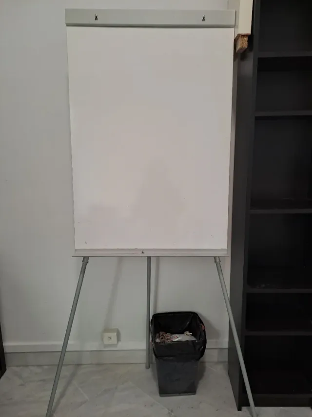 Pizarra blanca con soporte trípode. - Superficie de escritura amplia. - Patas metálicas estables y combertibles