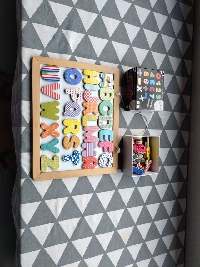 Detalles del productoJuego educativo infantil para aprender el abecedario y los números. Incluye una pizarra magnética con letras y números de madera, coloridas y vistosas. También se incluyen números magnéticos adicionales en su caja original. Ideal para niños en edad preescolar.