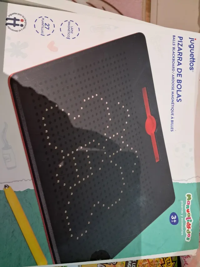 Pizarra magnética de bolas Juguettos para dibujar y crear. - Incluye 27 plantillas. - Lápiz magnético. - Apta para mayores de 3 años.