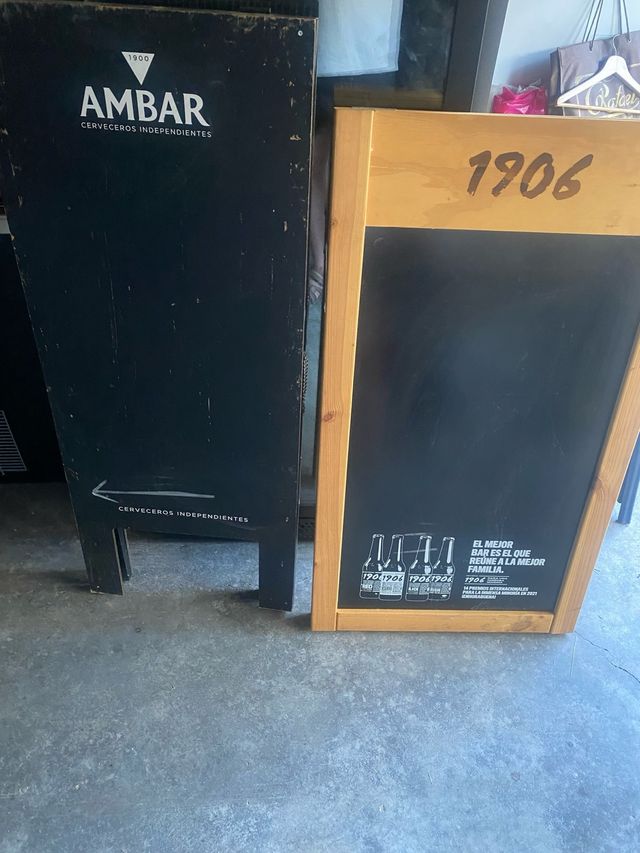 Se venden dos pizarras de bar. La de Ambar: 10 euros. La de 1.906: 15 euros. Las dos por 20 euros.