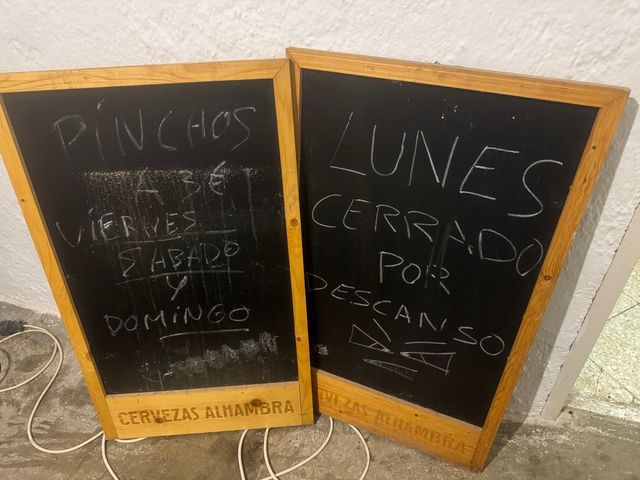 Dos pizarras de bar con marco de madera, ideales para negocio - Marca CERVEZAS ALHAMBRA grabada en la base. -precio por cada una